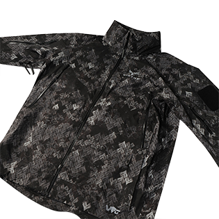 Wear Proteus solo in water or rain. Or pair it with Helios and Astraes when it's wet and cold. Fabrics NYX and EKHO are both fully functional 7-layer digital camouflage patterns. NYX is designed to blend into dark, night-time surroundings, and EKHO blends into lighter, urban surroundings.